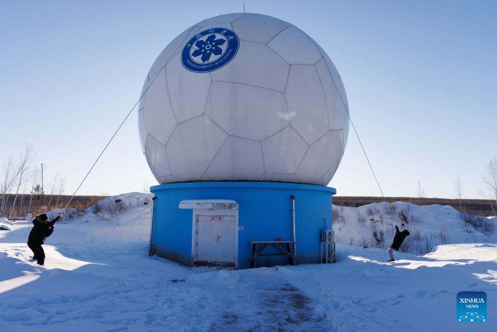 This photo taken on Jan. 24, 2026 shows the antenna radome at the Mohe Station of the China Remote Sensing Satellite Ground Station in Mohe, northeast China's Heilongjiang Province. (Xinhua/Jin Liwang)